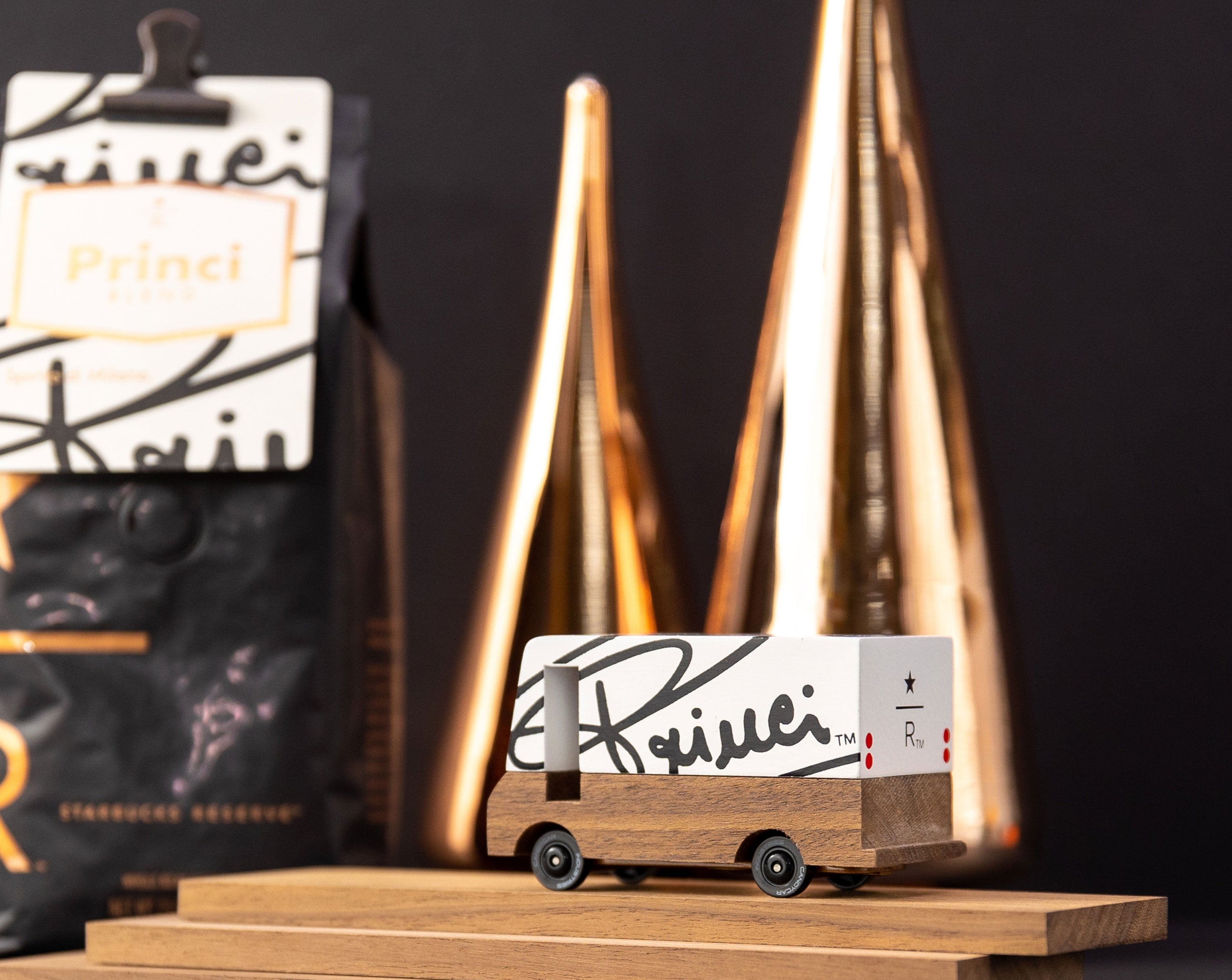 Our custom CANDYCAR® was a beautiful extension of that. We crafted a custom line with solid walnut with rose-gold aluminum base, and developed 5 designs that play on the heritage of coffee and culture in their stores in Seattle, New York City, and Chicago.