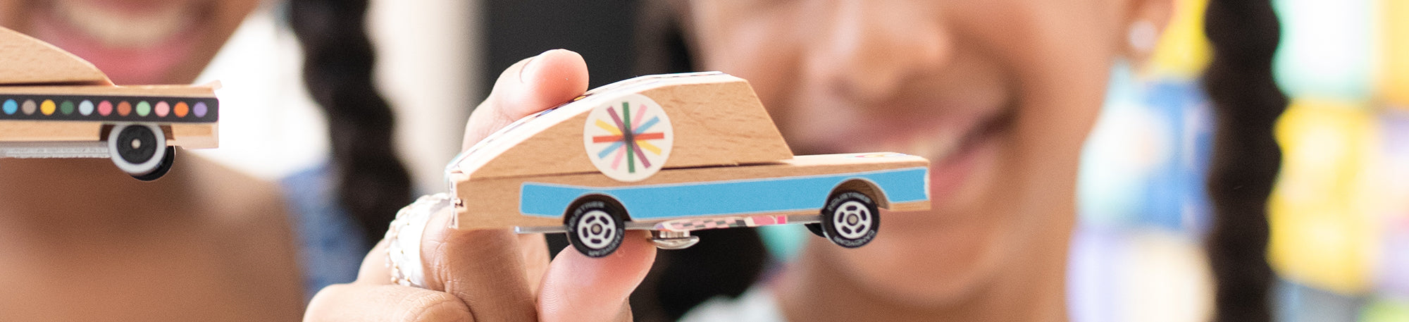 This awesome DIY kit has everything you need to build 12 of your very own CANDYCAR® vehicles! With just a dowel and a screw, put together your car and decorate to your liking using stickers, paint, or even some OOLY® Markers.