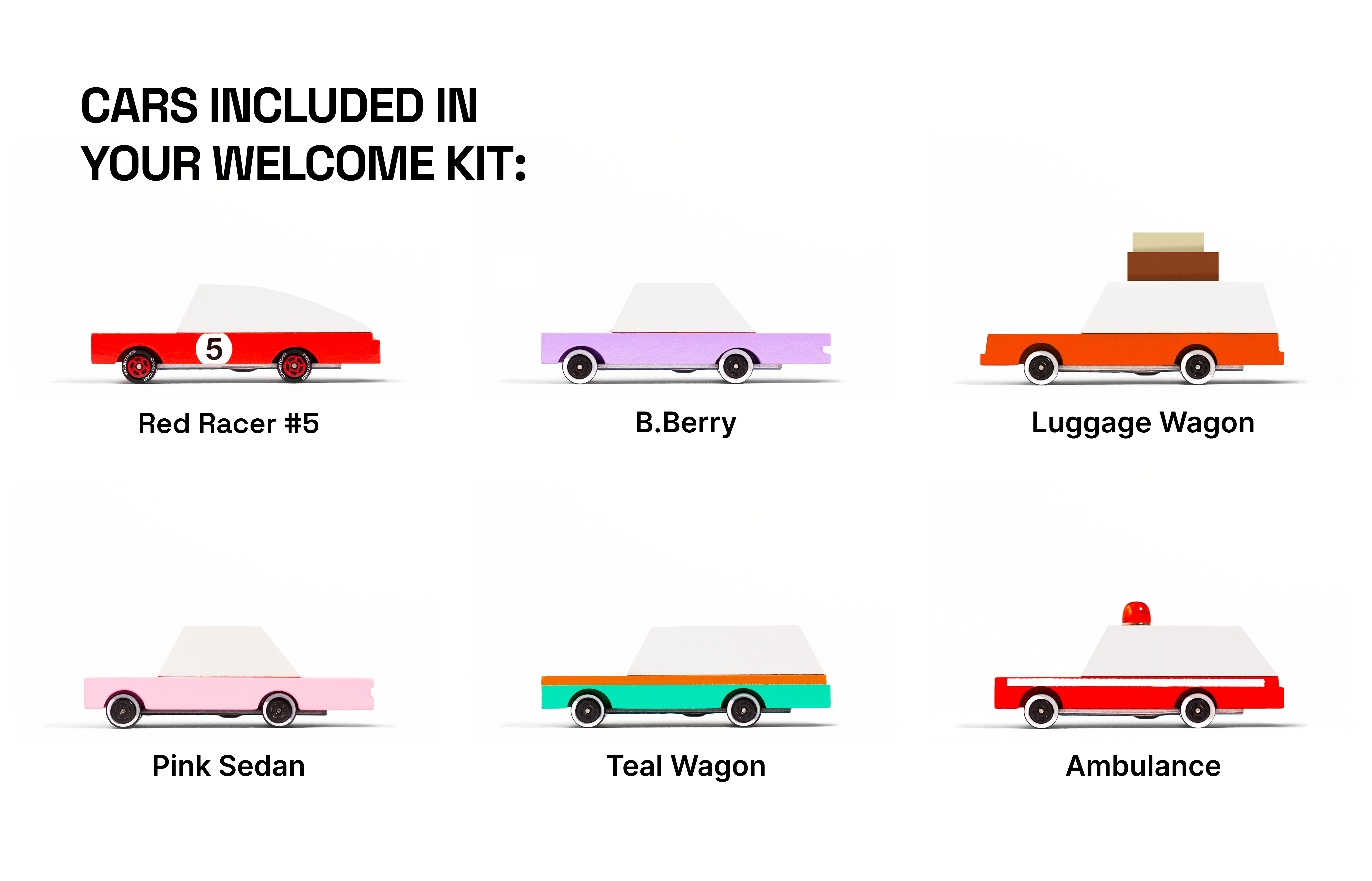 Welcome to the Candylab Toys family! Our CANDYCAR® Welcome Kit offers an unparalleled wooden toy experience, combining craftsmanship, sustainability, and endless fun.