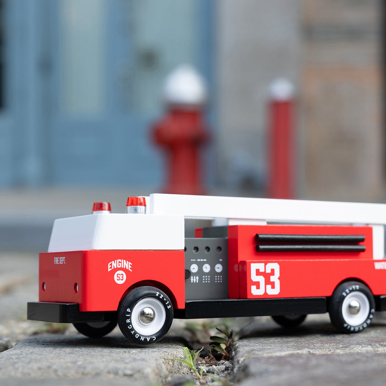 Sound the alarm! Our Ladder 53 fire truck is on the scene and ready to save the day. Made from durable beechwood and a new underbelly Mint coin detail, this fire truck is one of our most iconic toys, designed to tackle even the hottest playtime adventures.