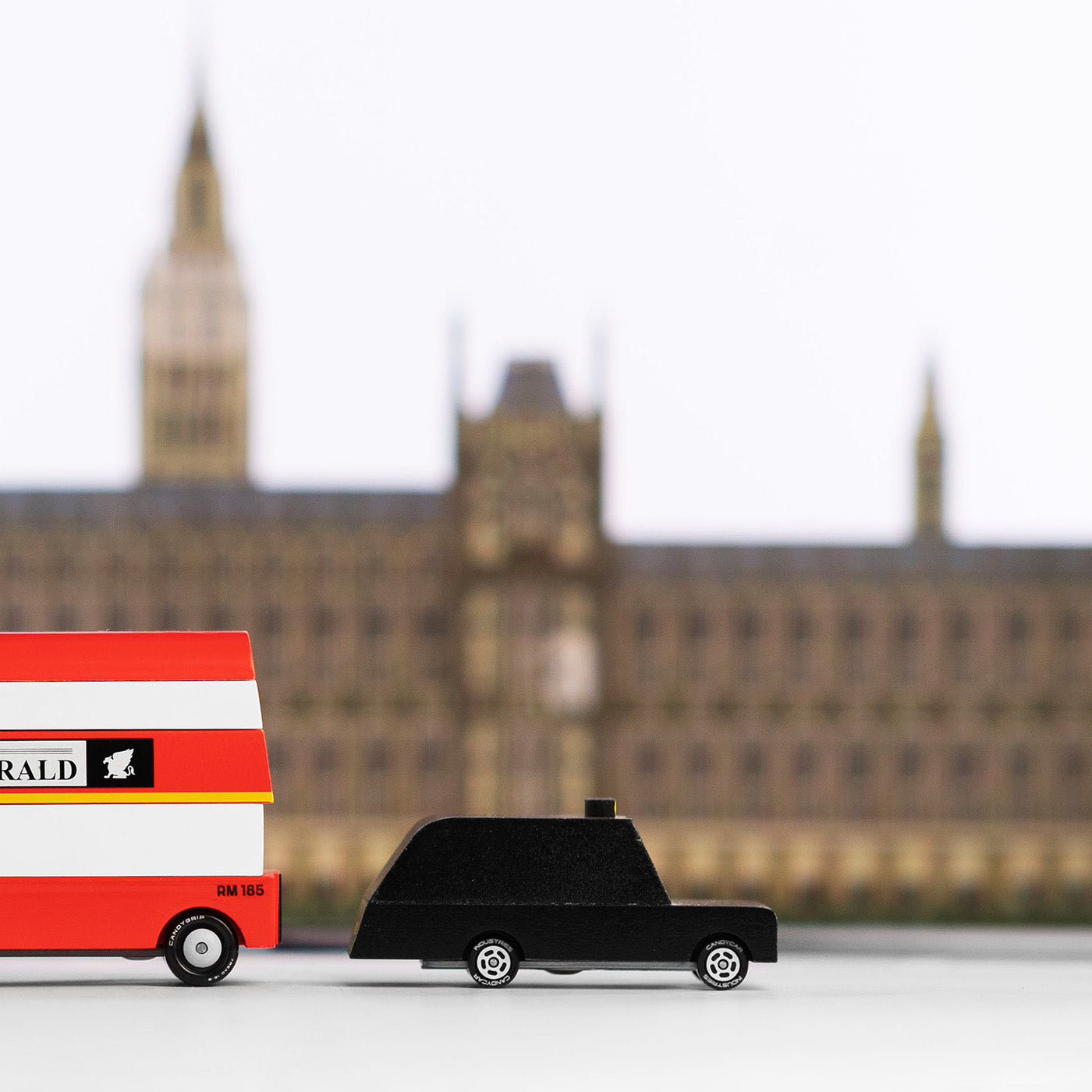 Fancy a ride to your afternoon tea? Hop in a London Taxi — they always know the quickest way across town! The black cab is to London what the yellow taxi is to NYC: a timeless icon. Sleek and speedy, this brand new CANDYCAR® is ready to roll!
