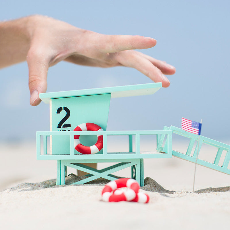 Ever since our STAC effort - and everyone kept asking for it, we kept pressing on, and now we can reveal the first concrete result. This here is a sweet accessory to any beach themed playset, or discerning shelf. Pastel-painted plywood and rubber lifesaver included. No sand included! Please note: Some assembly is required. Pairs with Americana collection.