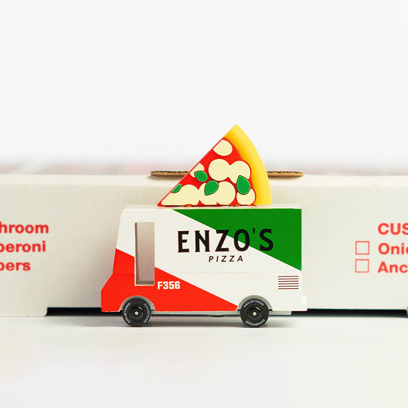 Pepperoni, Hawaiian, or just plain cheese, our new Pizza Van is cooking up the tastiest pies in the CANDYCAR® World. Wood-fired from a wooden van, Enzo’s simply can’t be beat.