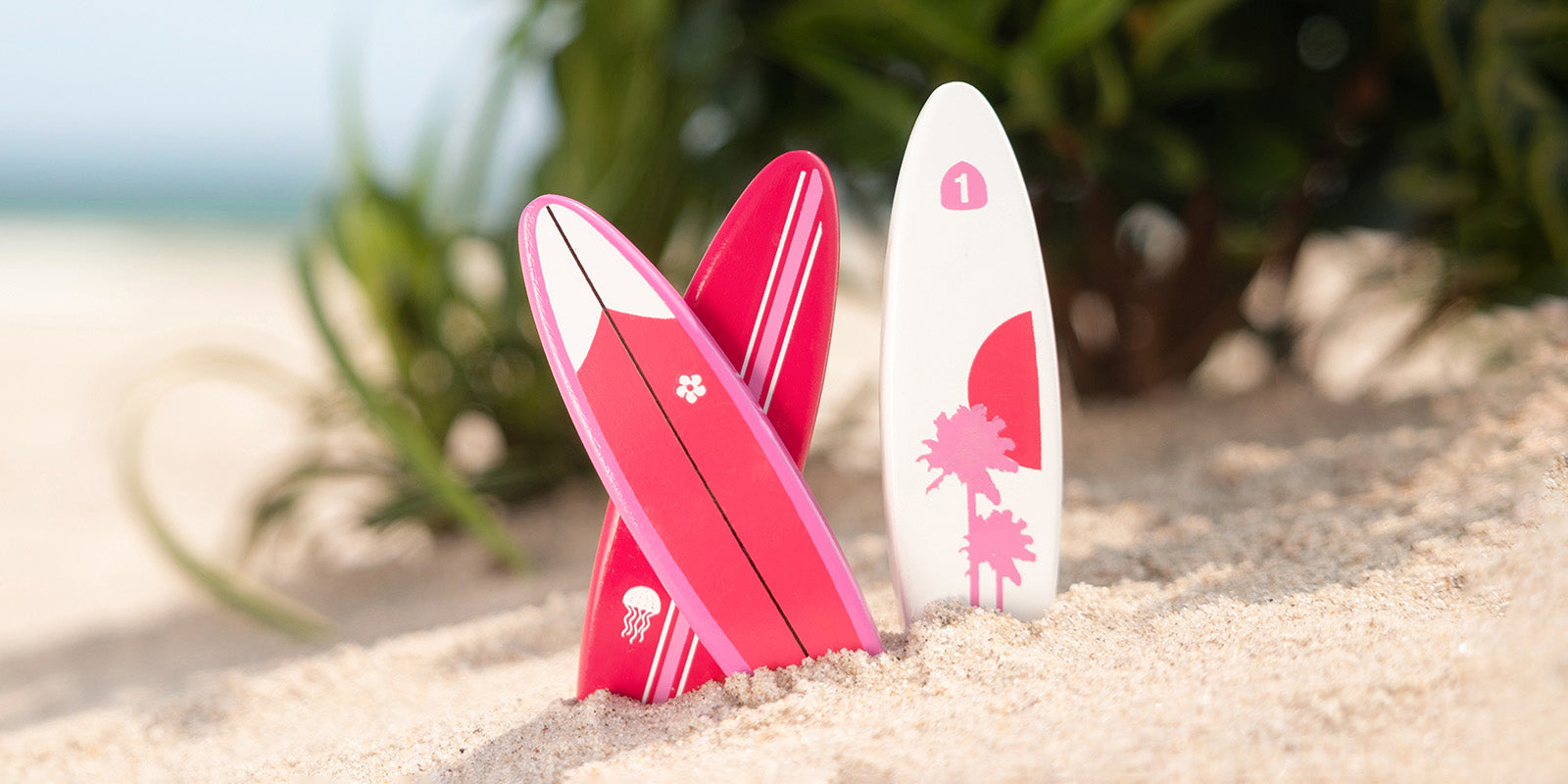 You get three unique styles in this pack of solid beech surfboards. With an embedded magnet in each, put one on your Woodie, one in the back of your Longhorn, and one on the fridge.
