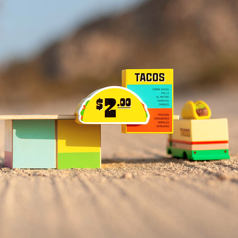 Our Taco Van has long been a standout in the CANDYCAR® collection, a small-scale tribute to roadside food culture, built with bold colors, clean lines, and unmistakable charm. Paired with the Taco Shack, it becomes a full scene, compact, collectible, and ready to serve.