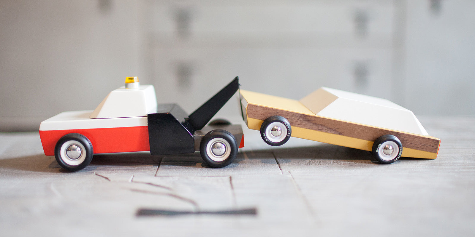 A staple of every garage, Towie is glad to jump to any car's rescue. Sturdy, and ready to use its rubber band to help a car in need. Not for children under 3 years of age. Check out all the Americana™ Cars that pair with Towie here.